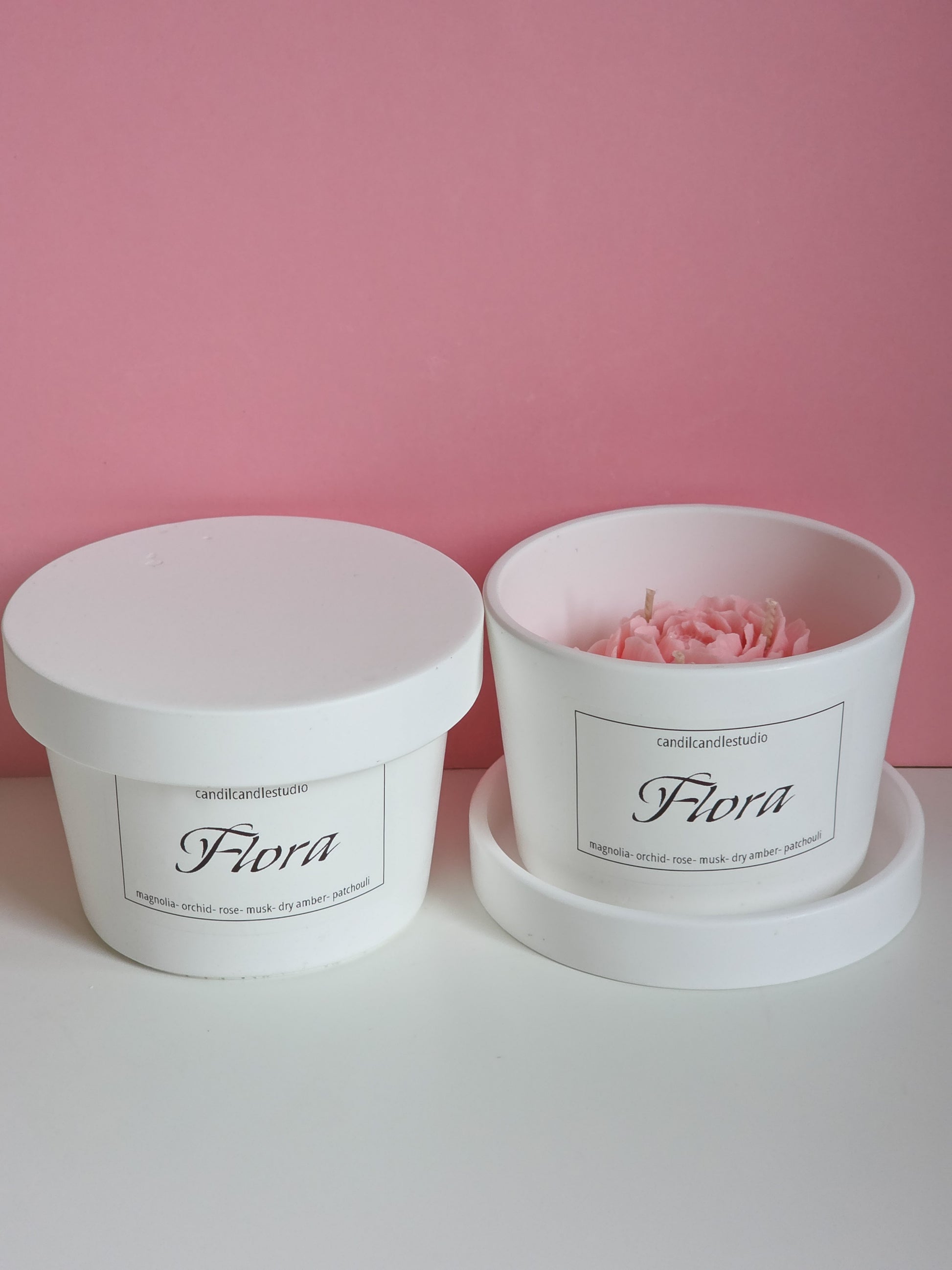 A handcrafted flower candle designed to bring softness, artistry, and calm into your space. Each piece is carefully hand-poured and features a sculptural floral candle set inside a minimalist vessel made by hand from eco-friendly casting powder. The natural, matte finish gives every vessel a unique character, making each candle truly one of a kind.