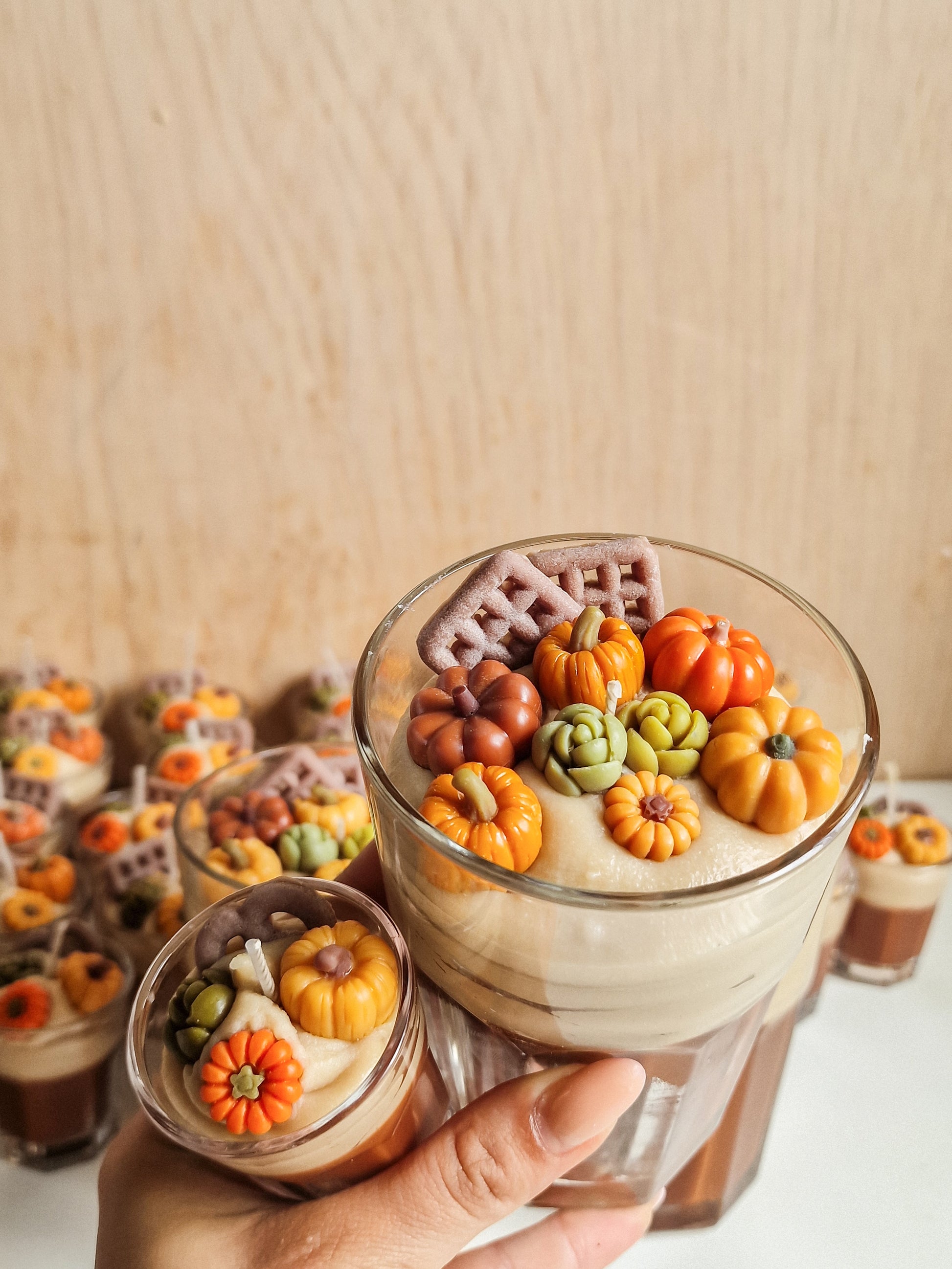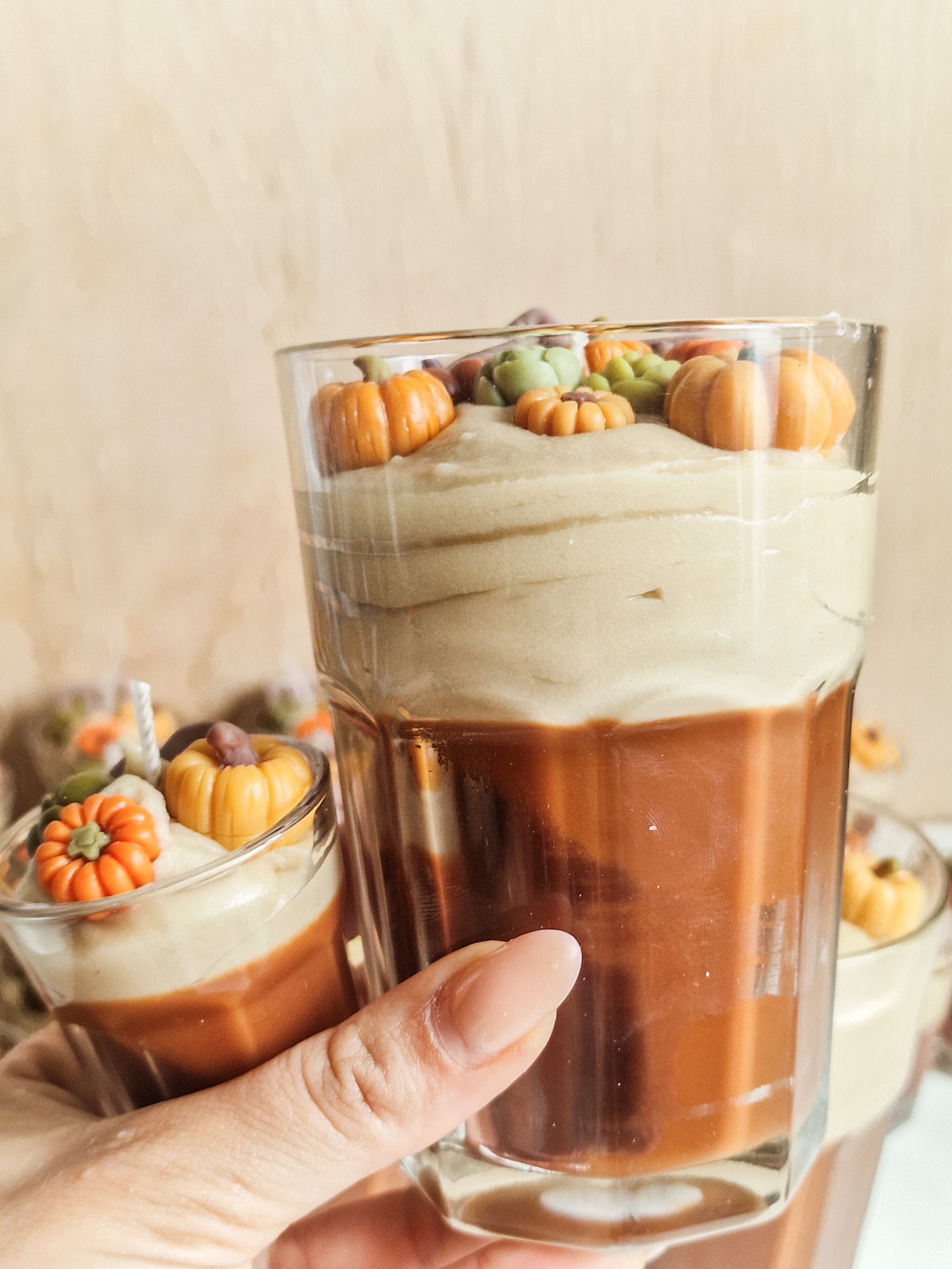 An artisanal creation that captures the essence of autumn. Our Pumpkin Latte Candle is elegantly handcrafted and adorned with intricate pumpkin details, making it as visually enchanting as it is fragrant.
